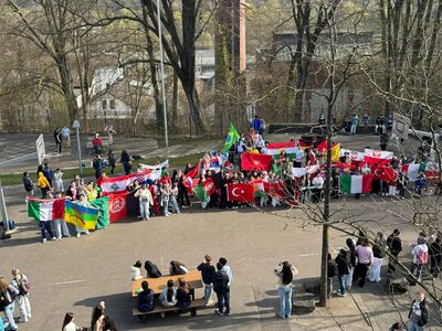 Dafür stand unsere Schule ganz im Zeichen der Vielfalt: Viele Schülerinnen und Schüler sowie Lehrkräfte kamen in traditioneller Kleidung bzw. Trikots und mit Flaggen verschiedenster Länder zusammen. Die große Bandbreite an vertretenen Nationen spiegelte eindrucksvoll die kulturelle Vielfalt unserer Schule wider.