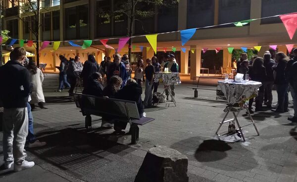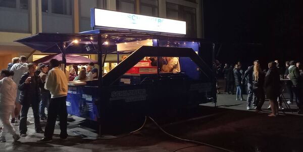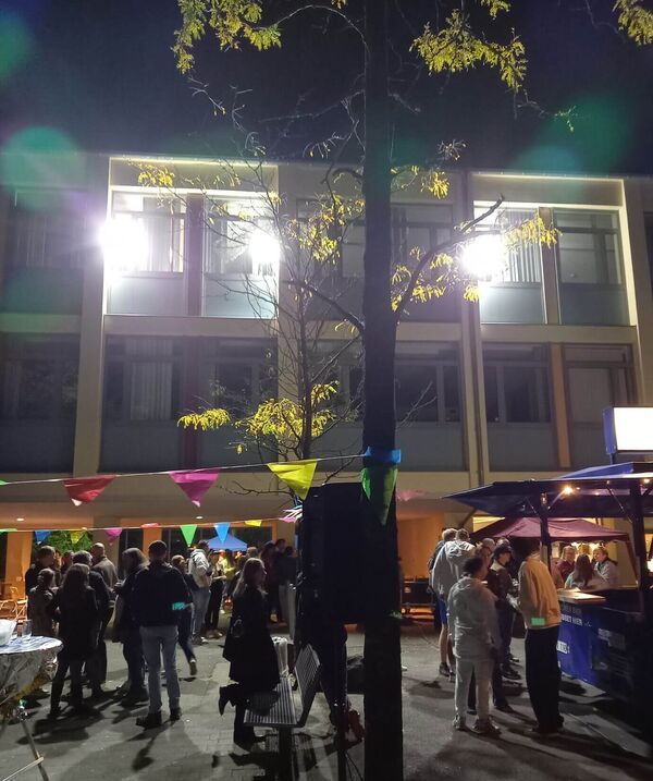 Glücklicherweise spielte das Wetter mit: Es blieb den ganzen Abend trocken und mit Jacke ließ es sich bestens auf dem Innenhof aushalten. In den späteren Abendstunden kam ein Novum zum Einsatz: Die Schülerfirma hatte neue Scheinwerfer angeschafft, die den Schulhof auch nach Sonnenuntergang angenehm ausleuchteten. Diese gute Idee wird sicher bei zukünftigen abendlichen "Open-Air"-Veranstaltungen regelmäßig aufgegriffen werden.