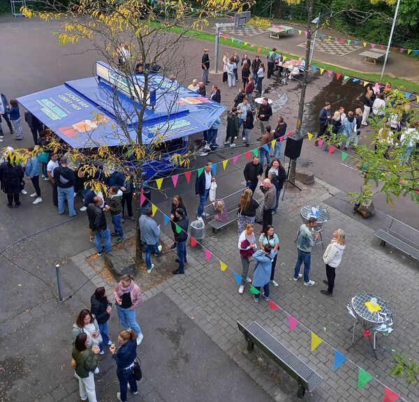 Das Ehemaligentreffen am 12.09.2025 wird allen Besucherinnen und Besuchern in bester Erinnerung bleiben. Schätzungsweise 200 Personen kamen am Freitagabend zur "Pina", um ehemalige Klassenkameradinnen und Klassenkameraden oder frühere Lehrkräfte wieder zu treffen. Der Gesprächsstoff ergab sich von selbst: In vielen kleinen Gruppen standen die Ehemaligen auf dem Schulhof verteilt und tauschten ihre Erinnerungen an ihre Schulzeit aus. Oftmals bestehen die Schulfreundschaften bis heute.