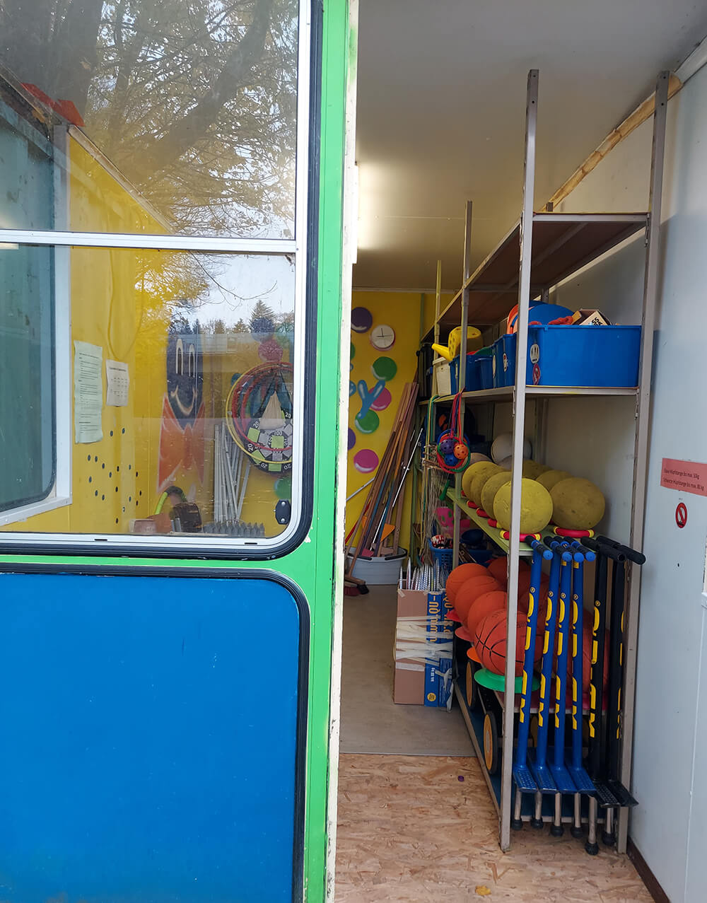 - Pausenangebot: Während der Mittagspause stehen den Schülerinnen und Schülern Spielmaterialien zur Verfügung. Der Freizeitraum im C-Gebäude und der Spielecontainer auf dem Schulhof stehen allen Schülerinnen und Schülern in der 5. Stunde zur Verfügung und werden von uns pädagogisch begleitet.