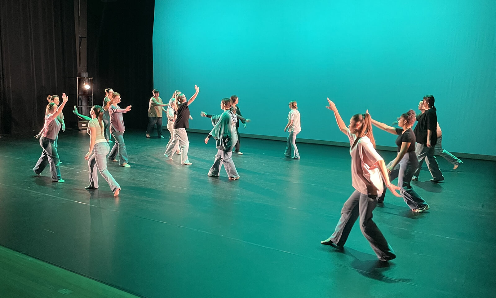 Über ein ganzes Jahr hinweg haben die Tänzerinnen und Tänzer an ihrer Choreografie gearbeitet. Ein Highlight des Projekts war die intensive Probewoche im Pina-Bausch-Zentrum, in der die Teilnehmerinnen und Teilnehmer die Möglichkeit hatten, sich voll und ganz auf die Aufführung zu konzentrieren. Diese Woche war geprägt von harter Arbeit, kreativen Ideen und Teamgeist. Die Schülerinnen und Schüler haben nicht nur ihre tänzerischen Fähigkeiten verfeinert, sondern auch gelernt als Gruppe zusammenzuarbeiten und ihre individuellen Stärken einzubringen.